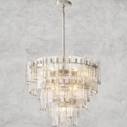 Lattice Clear Glass Tiered Round Chandelier 36", 47"